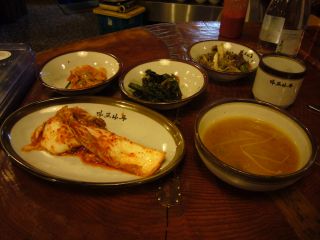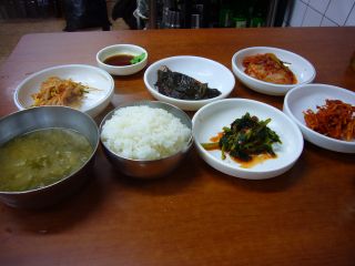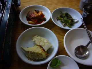 ペッパン・・・4,000ウォン 店名:コチャンシクタン キムチマリククスだけでは量的に満足できないので、一度試してみたいと思っていたここへ(定宿であるBIZの正面)。先月、BIZの2軒隣にあるホナム食堂でクルビペッパン(4,000ウォン)を食べたので、そことの比較をしようと。 クルビペッパン専門とありますが、注文したペッパンにはクルビでない焼き魚がありました。2枚目の写真は食事がほぼ終わるころに出てきたスンニュ。さて比較してどうなのか? トータルでホナム食堂に軍配を上げます。コチャン食堂は、ごはんの量が多いことと、最後にスンニュを出す心配りが○です。 |
