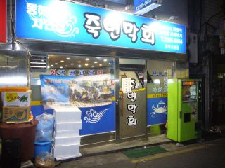 フェトッパプ・・・6,000ウォン 店名:チュッピョンマクフェ 先月の旅行でハマったフェトッパプ。ここ、モノ(料理)の写真撮り忘れました。忠武路の街を歩いていて、夜も遅くなってきたので適当に入った店です。味はまぁ普通でしたね。 |