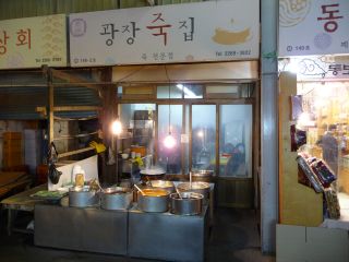 シンチャンクッパには9:15に着いた。扉は開いているが掃除中で、食事できる状況には見えない。仕方なく10時の開店時間まで散歩することに。適当に歩いていたら、ほどなくチャガルチ市場に着いてしまったw。こんなに近かったのか。