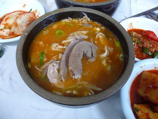 昼前、インチョン空港着。リムジンチケット(8,000ウォン)を買ってバスに乗り、ソウル市内某停留所に13時前に着いた。ムチャクチャ腹が減っている。機内食代わりのいつもの大福も食わなかったし。でお気に入りのスンデ屋に直行した。