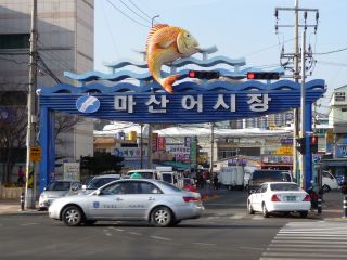 最寄の停留所は「チェネグァ」であることは調査済だったのだが、アナウンスが聞き取りづらくて通り過ぎてしまって、その次の「オシジャン」で降りることにした。もともとこのマサンオシジャン(馬山魚市場)にも寄るつもりだったので、まぁ結果オーライか^^;このオシジャン、かなり規模がデカかった。チャガルチはもちろん、ポハンのチュクト市場にも匹敵するんじゃないかな。