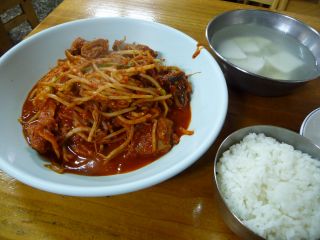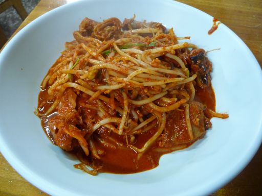 マサンにはアグチムを食いに来た。アグチムなら韓国どこででも食べられるのだが、コンアグ(コナグ、乾燥アンコウ)を使用して、味付けにテンジャンを加えるのが本場マサンのアグチムの特徴だとか。これが食べてみたかった。センアグ(生アンコウ)のアグチムは食べたことがあるので。で、このマサンアグチムの元祖店が今回の目的の店。