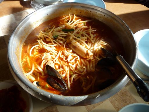 ということで、↑を見てさっさと帰路についた。バス停に着いて時刻表を見てみると、1時間に1本ぐらいの割りで出ているのだが、ちょうど行った後のようで次の便まで50分ほどあった。まぁいいかと30分ほど、これからのこと(夕食)を考えながら待っていると、タクシーが止まり、クリョンポまで2,000ウォンでどうだ?と声をかけてきた。これに、バス停で待っていたうちの2人連れが即乗った。もう20分待てば次のバスが来るが・・・私も乗った^^;バス代が1,500ウォンなのでプラス500ウォン。悪くない。