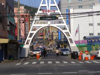 再びチュンムドン市場に戻り、ぐるっとひと回りしてチャガルチ方面を向いたら、大通りをはさんでこんなゲートがありました。チュンムドン・セビョク市場、こんなところがあったとは!チュンムドン・ヘアン市場の隣にあり、規模は大きそうです。ゆっくり見たかったのですが、そろそろ時間なので次回にでも。 |