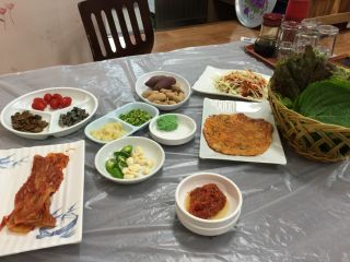 ミョンジが個人的にいいと思っているところは、サツマイモとムグンジキムチがあるところ。チョジャンも甘めでサラサラ感があり、ハダンのものより好み。