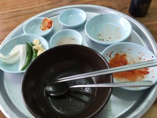その後、歩いてカグゴリまで行き、鉄橋を渡ってプサンジン市場、そしてメチュクチ(埋築地)へと散策。ここ、「釜山の人情食堂」に載っていたところ。平坦な土地で、いい味出してた。
