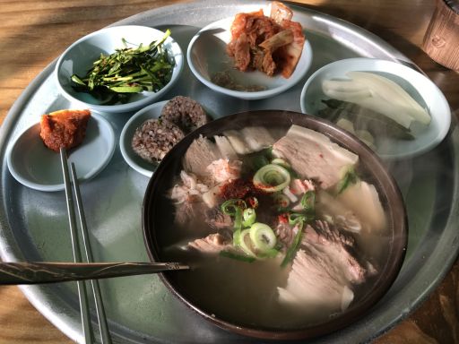 チョノフェが食えたらと思ってましたが、キメ空港に着いて外に出たら「やっぱ肉食いてぇ」となり、ハルメクッパに直行。混んでましたがテーブルが一つだけ空いていてそこに着席。その後すぐアジョシが相席になり満席。待ちができ始めました。5月以来の半年ぶりの訪店でしたが、相変わらずうまかったです。でも変わったところもあって、セウジョがセルフになってました。いつももう少し欲しいなぁと思うことあったのでちょうどよかったです。