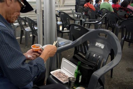 3日間とも小雨まじりの曇り空であまり暑くありませんでした。実は、禁酒&減量中だったので、当初はあまり韓国行のモチベーションが上がりませんでしたが、チョノ祝祭につられ、初めての酒なし海外旅行になりました。「酒なしの刺身って...」って心配してましたが、あまり気にならずチョノフェを味わえました。祝祭は、初日の無料配布を逃したのが痛かったかな。