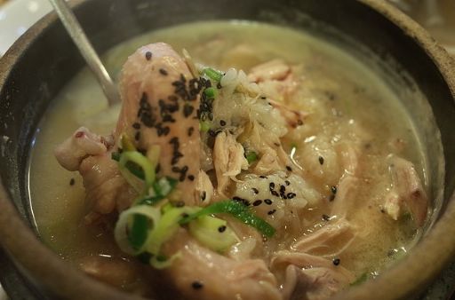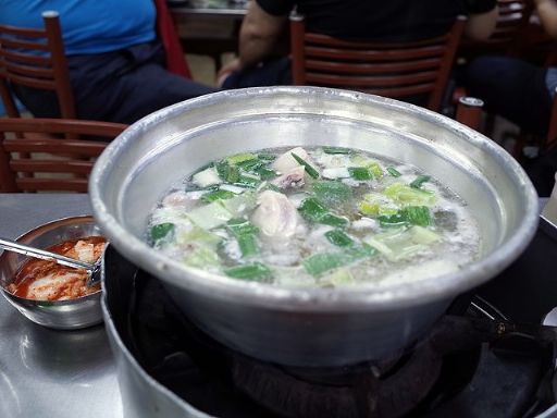 その後、ノリャンジンの水産市場に向かう。雨がひどく、ノリャンジン駅近くのカフェで休憩。その後仕方なく傘を買い、水産市場へ。ミノフェを食べるつもりだったが、高い高い。1匹の半分にしてくれるというところでも6万wだと。ミノフェはあきらめ、久しぶりに土俗村で参鶏湯を食べることにする。