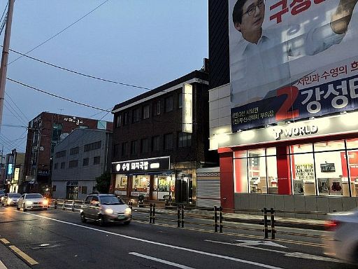 2号線に乗り換え、水営。今日の夕食は水曜美食会で取り上げられた水営テジクッパだ。7:00頃到着。意外に空いていた。よくある「TVに出ました」の宣伝の類は一切なく気持ちいい。テジクッパを頼むつもりであったが、ちらっと見えた他の客のスベクが良さそうだったのでスベク(9,500w)+ソジュ(4,000w)を注文。肉はハルメクッパ程の厚さはないが質は良く、玉ねぎ入りのわさび醤油につけて食べる。スープは一見白っぽいが、混ぜてみると底に沈んでいたタデギのため赤っぽくなる。かすかに豚臭さは感じたが、味は良い。最初に素麺を投入し、肉と交互に食べる。最初は空いていたがすぐに客でいっぱいになる。肉がなくなるといよいよご飯を投入してクッパにする。クンムルが美味く、とてもよかった。