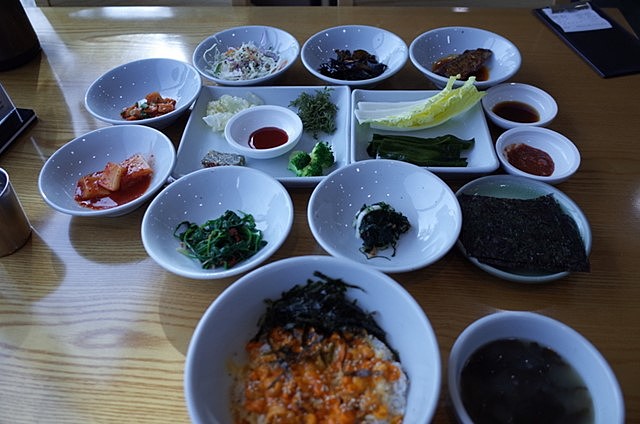べクスコで東海線に乗り換え、日光まで。日光のビーチ沿いのカフェ(イルマノコーヒー アイスカフェラッテ 6,500)で休憩後、ミチョン食堂でアンジャングパプ(15,000)を食べる。パンチャンも含めうまかったです。バスを一回乗り換え、東釜山ロッテアウトレットへ。Ediya Coffeeで休憩(アイスカフェラッテ)しただけで、特に何も買わず海雲台まで戻る。 |