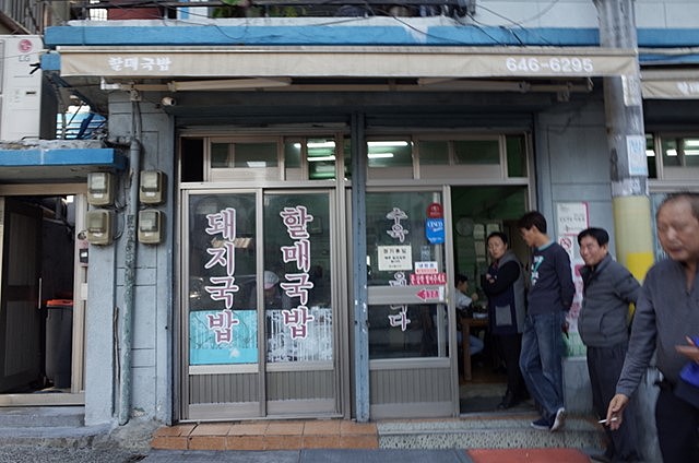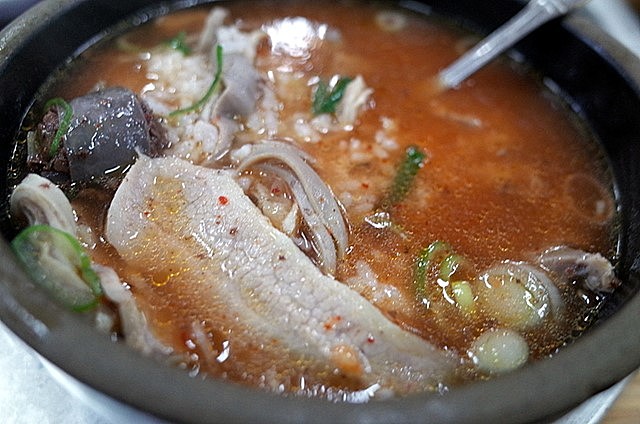 慶星台・釜慶大で降り、バスで釜山聖母病院へ。宿題店のハプチョンテジクッパチプだ。ハルメクッパと同じように、入り口わきでイモが肉を切っている。モドゥムタロクッパ(8,000)を注文。透き通ったスープ。最初のスープひと口目は、なかなかいけた。肉も悪くない。スンデがすごくうまい。ご飯を投入してかき混ぜると、底に沈んでいたタテギのせいでスープは真っ赤に変色してしまいました。透明なままの方がよかったのになぁ。悪くないと思いますが、場所的になかなか再訪はむつかしいかな。でもエクスプローラさんやHoagieさんは気に入るんじゃないかなって思えました。そういえば、たしか、こっちの方、ミルミョンの店もなかったけな。