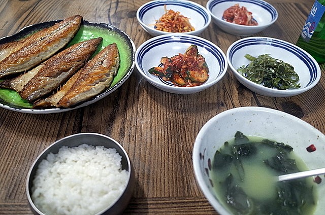 影島ヘスタン近くまで歩いて戻り、バスで再びチャガルチへ。「魚でも食べたいな」って思い、以前行ったことのあるサバ定食の店に向かう。そちらの店の前で、対面の店のおばちゃんの客引きに釣られてしまう。センソングイが7,000だと。入店直後、「これはまずいぞ」と直感。ソウルトンデムンのホナムチプの店内のような感じ。他に客はいない。着席してから、コドゥンオはマノンと言う。「やられたな」と思いながら、客引きに熱心なおばちゃんを見つめながらソジュを飲む。誰も引っかからないようだ。出てきたパンチャンをみて、さらに愕然する。「たったこれだけか。」出てきたサバも開いてある鉄板焼きが3枚。サバ自体は脂も少なめでまずまずだったが。高すぎ。去年行った対面の店とのあまりの違いにびっくりする。(店の名前はコジェフェチ*)