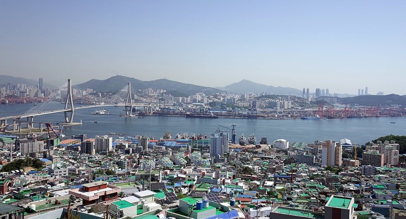 9番バスで再び影島へ。中腹道路を通り、旧ヘサゴで降りる。目の前に簡単な展望台があり、釜山港大橋が臨める(写真1)。蓬莱山に登るつもりであったが、道がよくわからず断念。マウルバス5番で戻り、チャガルチのインフォメーションで今晩の済州行きのフェリーを予約してもらい、蓬莱山、荒嶺山の登り方も聞く。