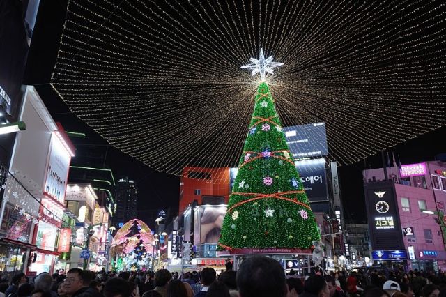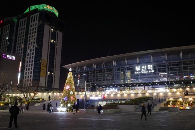 | 金海定刻着。外はまだ明るい。空港ATMでウォンを降ろし、軽電鉄でササンへ。バス(61)でチョリャン。6時過ぎ、夕食は最近の定番、算数甲山でテジガルビ(18,000)。釜山駅前を見学後、ナンポドンへ(61)。クリスマスイルミネーションがきれいだ。フルー800でアイスカフェラッテ(1,700)。バス(71)で影島へ。今夜は影島海水ランド泊(8,000)。1,000値上げしてた。 |