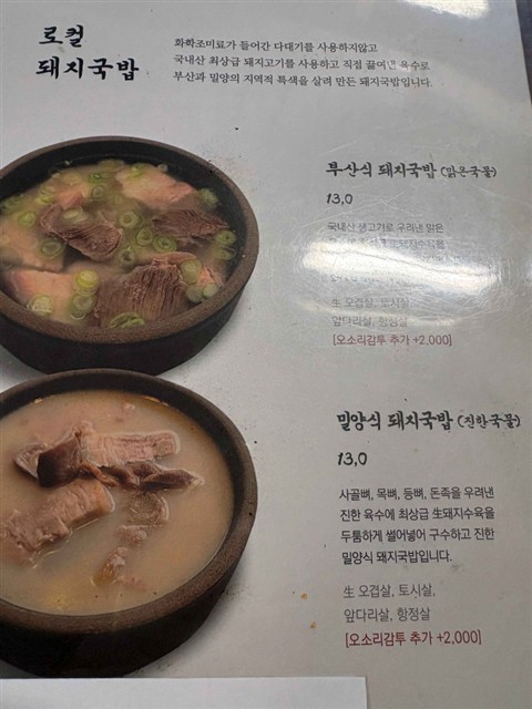| メニューを見ると以前と変わっており、テジクッパ(13,000w)は4種類ある。 |