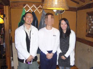 さて、店には10分前に着いた。外から中を覗いてみるが、らしい人は見当たらない。らしい人って、パサモのサイトで何人かは写真を見てきているのでわかる。とりあえず外で待ってみる。19:30を5分過ぎたが誰も来ない。コリアンタイムなのかすでに中なのか、店内へ入ってみると・・・いた。写真で見たことがある人たちが3人、奥の座敷ですでにヤっていた。「처음 뵙겠습니다.」 「ハジメマシテ」、ついに合流したのであった。