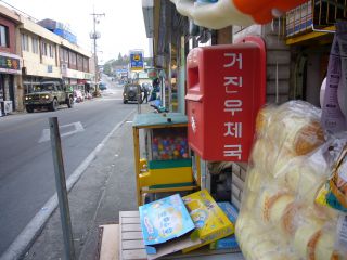 6時起床。シャワーを浴びて顔洗って、朝飯に外出。普段なら、ソルロンタンとかちゃんとごはんモノを食べるのだが、これから長時間クルマに乗るので水分を控えるため、ベーカリーでアンパンを2個買い、食いながら宿へ戻ってお茶をカップ一杯。メールチェックして、荷造りしてチェックアウト。ここ(BIZ)で8時にDOLBYさんと待ち合わせ。15分ほど遅れて合流、地下鉄に乗りヤンジェ(良才)駅で下車、近くのレンタカー屋で쥰세이さん、정진욱さんと合流。計4人で、9時に出発した。
