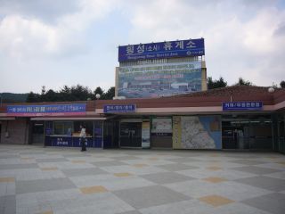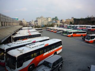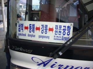 今回は、まずカンヌン(江陵)へ入る。キンポ(金浦)空港を経由して走るこのバスの停留所を確認して、その横にあったチケット売り場でチケットを購入する(17,600ウォン)。一番前の席を頼むと「3番」だった。13:30発で、まだ1時間以上あるので昼食を・・・と、ここでひとつ失敗。食堂事情をよく調べておけばよかった・・・