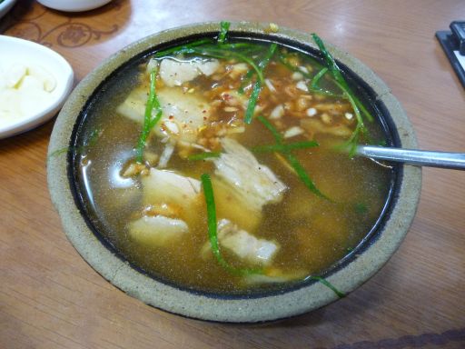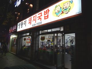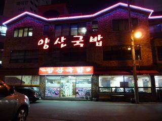 終点チャンサン駅に着き5分ほど歩いて、初めてのテジクッパ店「ヤンサン(梁山)クッパ」に着いた(18時半)。ここ、パサモのプサン出身メンバーが教えてくれた店なのだが、中心部から結構距離があり(地下鉄の終点だしw)、検索してもあまり情報がないこともあり、率直なところあまり気が進まなかったところだった。が・・・お気に入りの店になってしまったのであったw