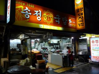 ここは本来予備の店であった。いままで行った3軒でプサンを終了して、ソウルへ向かう予定だったのだ。ただ、ヤンサンクッパがヒットだったら行こうとは思っていたので、ある意味予定通りだったのかもしれない。「ヤンサンクッパがヒットだったら」というのは、このシンチャンクッパのテジクッパが、写真を見る限りヤンサンクッパのそれと似ていたから、ヤンサンクッパがうまければシンチャンクッパと比較ができると考えたのだ。