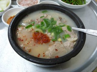 10時にシンチャンクッパに戻った。そしてテジクッパを注文。ここのはいままでで一番高くて5,500ウォン。出てきたものは、見た目はやはりヤンサンクッパと似ていた。豚肉の内容も似ていて、スパイシーなスープも似た味ではあったが、ヤンサンクッパにあった香ばしさはなかった。その点から、個人的にヤンサンクッパの勝ちとした。でもここ、いいもの持ってると思う。ヤンサンクッパを知らなかったらここが一番かも。
