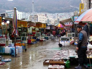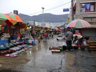 シンチャンクッパには9:15に着いた。扉は開いているが掃除中で、食事できる状況には見えない。仕方なく10時の開店時間まで散歩することに。適当に歩いていたら、ほどなくチャガルチ市場に着いてしまったw。こんなに近かったのか。