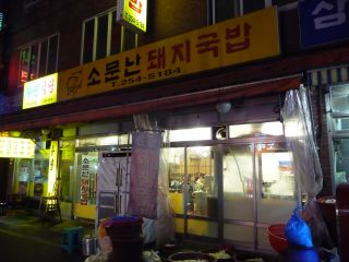 19時、夕食はソムンナンクッパでテジクッパ(5,500ウォン)。時間的なこともあり、ほぼ満員。支持されている店だろうことはうかがえたが、ごく普通の味。肉のボリュームはあった。