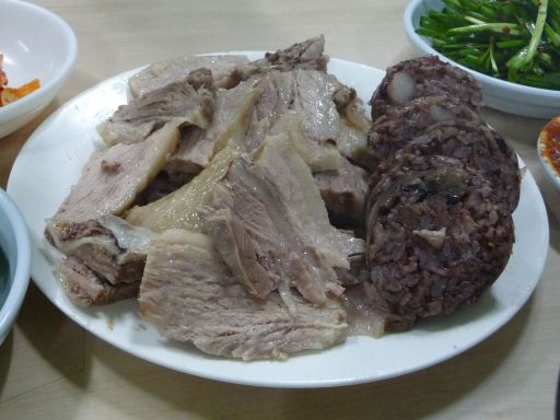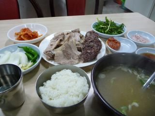一般的にスユッペッパンと呼ばれるこのメニュー、●●●クッパでは「スユッパプ」、まぁスユクプラスご飯、そしてスープですな。写真で伝わるかなぁこれ。出された瞬間、「うまそう!」と言っちゃいました。いま思い出しても・・・食いてぇ!かなりのボリュームで、昼か夕食向きのメニュー。これで6,000ウォン。テジクッパだけじゃ夜に腹減るかな?と思っていたのでちょうどよかった。