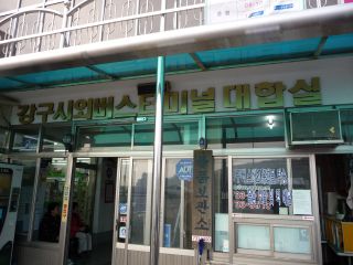 カングターミナルを12:10に出て、ポハンターミナルには12:55着(4,500ウォン)。ポハンターミナルからはKTXのトンテグ(東大邱)駅直行リムジンで(7,400ウォン)。ポハンターミナル13:40発、トンテグ駅14:55着。KTXに乗り換え、トンテグ15:05発、ソウル16:55着(36,500ウォン)。