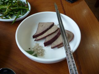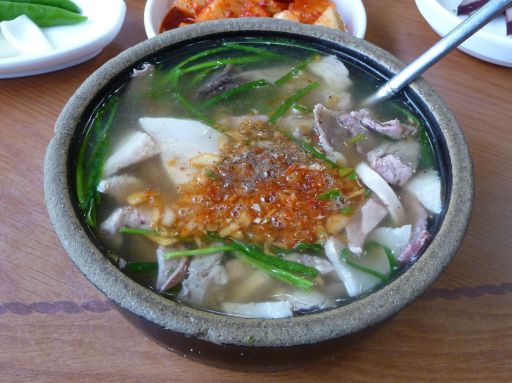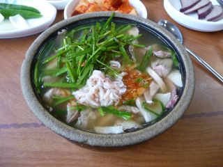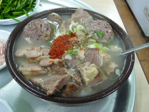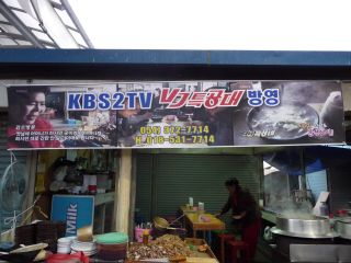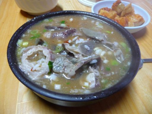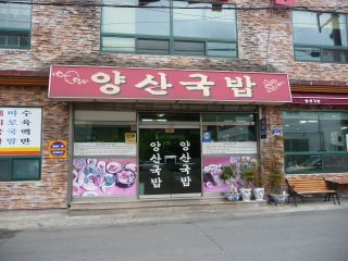 レジで支払うとき、主人(女)らしきが、「入ってくるとき、どうして写真撮ってたの?」「日本で・・・」「あぁ日本の方ですか」・・・そして店を出て歩き始めると、後ろから「アジョッシ!」との声。何だ?と振り返ると、「ヘウンデのヤンサンクッパ!宣伝しといてね!」だと(たぶん)。「ネーッ!」・・・宣伝しときますたw