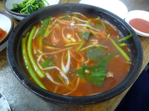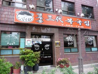 地下鉄とバスとで九徳運動場に戻り、その店へ来た。午前に行ったとき15,000ウォンと言っていたので、1,000ウォンでも負けてもらおうとやる気満々で、その品を手に取り「イゴ・・・」と言うや否や3万ウォンだと言う(女性)。「さっき15,000ウォンって言ってたやん」「主人がいなくて私が間違えてました。3万ウォンだそうです」「アイグ」・・・事情を聞いた主人は2万ウォンでいいよと言ってくれたが、よくわからんものに2万ウォンも出すつもりはなかったので、いさぎよく諦めることにした。