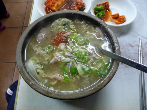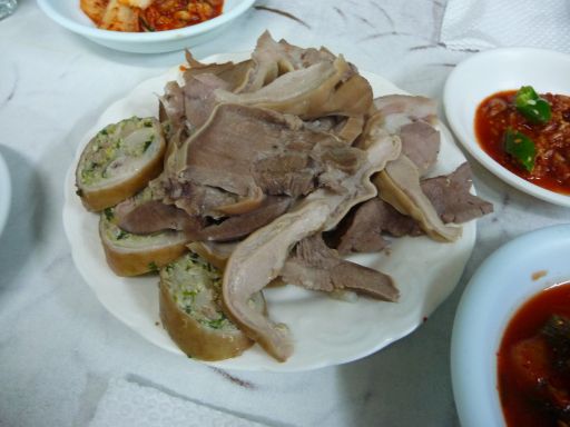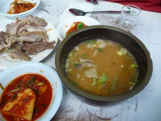 昼前、インチョン空港着。リムジンチケット(8,000ウォン)を買ってバスに乗り、ソウル市内某停留所に13時前に着いた。ムチャクチャ腹が減っている。機内食代わりのいつもの大福も食わなかったし。でお気に入りのスンデ屋に直行した。