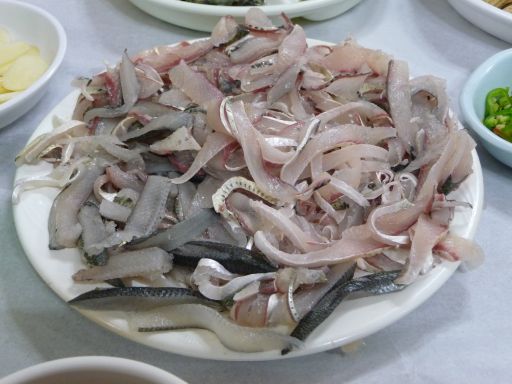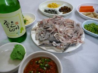 などと、つまんで待っていると、アジュマがやって来て、もしかして電話して来たのか?と聞いてきた。観光公社から尋ねてもらったと言うと、あぁあんただったか、という感じでうなずいている。実は、店は検索して探し出していたのだが、営業時間のことや、ひとりで行って2万ウォンぐらいでやってくれるのかが気がかりだったので、事前に韓国観光公社を通じて尋ねてもらっていたのだった。