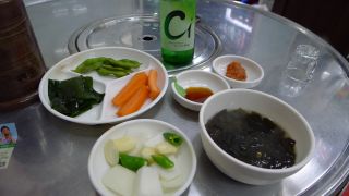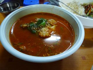 Aさんと落ち合い、テジクッパの店へ(16時半)。私はテジクッパ、Aさんはネジャンクッパを注文。スンデはサービス。