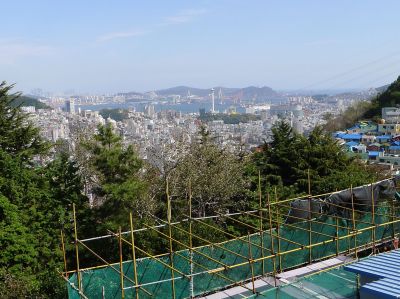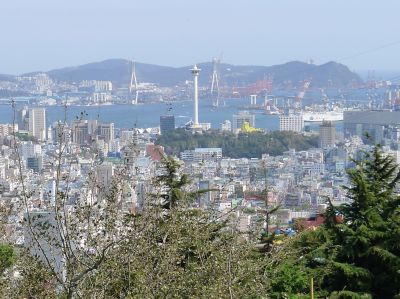 向かうのは、つい先日、テレビで夜景スポットで紹介されていた場所。夜景にはさほど興味はないが、でも明るいときの景色はもっといいだろうなぁ、と思って。急な、長い上り坂を上がって行き・・・