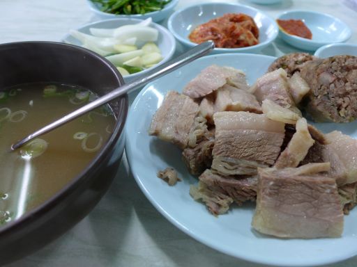 | プサンに来れば、ここのテジクッパは当たり前だったが、夏場は暑くてその気にならず^^; 久しぶりの肉でもあり、この肉がまたうまかった!冬場だと、すぐ冷えて脂身が白くなるところだが、この時期はそういうことがなく、脂身もじゅわっとやわらかいままだった。夏場はスーベクがいいかも。 |