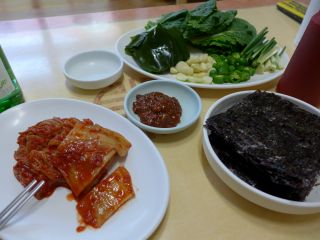 | ここでの特筆はテンジャン(自家製)だった。サムジャンと言ってもいいと思うが、アジュマはテンジャンと言った。クァメギをこれに付けるの?と聞くとそうだと言う。試してみると・・・うまかった!以前ポハンのグルメサイトで、「トングァメギはオレはミソで食べる」という書き込みを見たことがあって、ミソでうまいかぁ?と思っていたが、全然いいじゃないか!チョジャンよりいいかも。ちょっと塩分がおじさんには気になるがw |