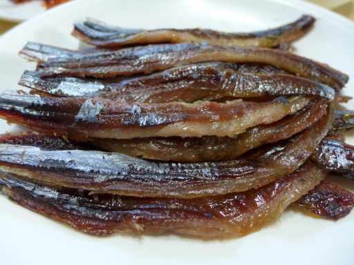 | さほど空腹ではないので、味見程度のつもりで入ったのだが、ひと口食べて、これは全部食うなと思ったのだったw ここのコムジャンオは、生きたものでもないし、韓国産でもない(アメリカ産)が、そんなことは重要ではない。うまければいいのだ。 |