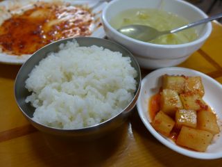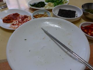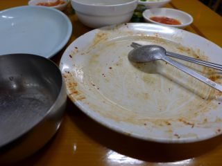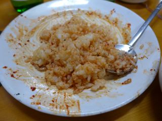 | さらに残ったタレを見て、もったいないとコンギパプを注文。きれいに食べたのであった。恐るべし、ハルメコムジャンオ。 |