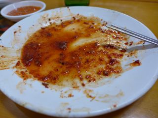 余談。現地ブログで、たばこの煙(におい)が気になったというのを複数見ていて、まぁそれは覚悟して入ったのだが、店内に禁煙マークのシールもあったし、実際に、たばこが吸えないというのであきらめて帰った客もあった。これはうれしかった。たばこのにおいはメシをまずくするからね。