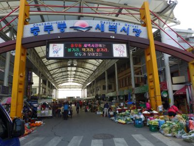 再びチュンムドン市場に戻り、ぐるっとひと回りしてチャガルチ方面を向いたら、大通りをはさんでこんなゲートがありました。チュンムドン・セビョク市場、こんなところがあったとは!チュンムドン・ヘアン市場の隣にあり、規模は大きそうです。ゆっくり見たかったのですが、そろそろ時間なので次回にでも。 |