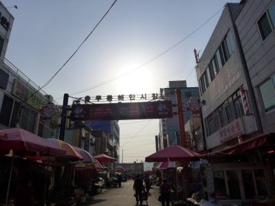 | チャガルチから外れたここ、チュンムドン・ヘアン市場という名前があったとは知らなかった。大通りをはさんで向こう側はチュンムドン市場で飲食店が多くある。こんなところがあったとは。次回、夜に行ってみたいと思った。 |