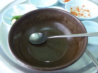 17番バスで、チャガルチ市場→ポリム劇場(9時着)。30分ぶらっとして、9時半ハルメクッパin。テジクッパを注文。 |
