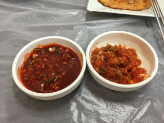 ミョンジが個人的にいいと思っているところは、サツマイモとムグンジキムチがあるところ。チョジャンも甘めでサラサラ感があり、ハダンのものより好み。