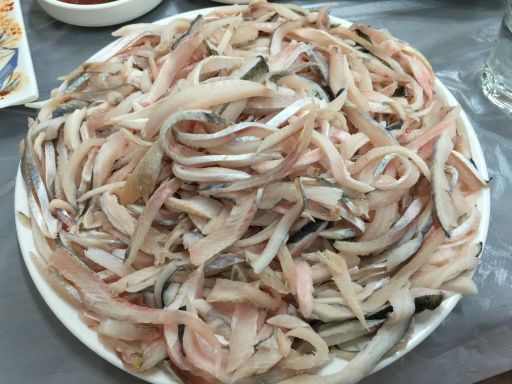 前回、ハダンでウンオフェを食べたときに思ったことは、昨年の5月にも思ったことですが、4年前のウンオ祝祭のときよりも活魚感があり、歯ごたえがあったことです。前回のハダンのは噛み疲れがありましたが、今回のミョンジのはそれがありませんでした。前回のは、冷たくないことも含めてチョノフェのような感じです。