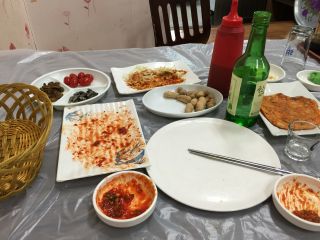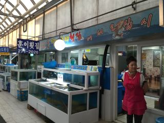 前回、あれからハダンファロセンターでウンオを食ったこと、先週ウンオ祝祭があったことなどを話しながら、ウンオフェを注文。一皿3万ウォンとのこと。25000ウォン+チョジャン代か。ハダンより高いなぁ。