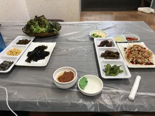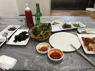 しばらくして若主人(たぶん息子さん)登場。アジュンマは奥さんなのかも。そして「ひとりなら半分ができるが」と言う。ではそれで、と注文。で出てきたのがこれ。多くもなく少なくもなくの量。結果、キャベツとコーンとコグマを食って心地よい満腹感でした。フェ18000+ヤンニョムジャン5000+ソジュ3500で26500ウォン。 |
