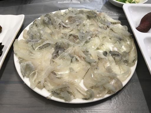 店に入ると、いつもの女主人でない若めのアジュンマが。トダリフェ、オルマエヨ?に、養殖モノ35000、天然モノ4万ウォンとのこと。高いなぁと思いながら「じゃあ養殖で」と注文。仕方なく4万超を覚悟して待つ。「サジャンニム、…」と電話してる。