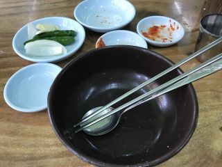 クッパを注文。スンデをひと切れ食ったとき、やっぱハルメクッパにしてよかったと思うのであった。ちなみに価格は5500ウォンに値上がり。6000ウォンでもよかったのに。 |